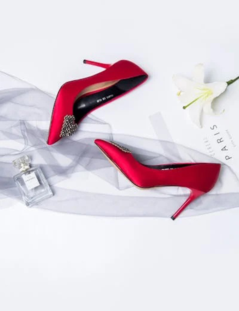Bella Red High Heel Shoes with Metal Heart Motif